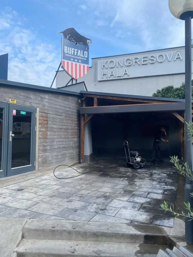 Tlakové mytí dlažeb/resturace Buffalo American Steakhouse Brno – Křižíkovského